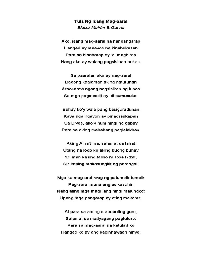 Tula tungkol sa kultura ng . Isang paham ang nagwika at matatag na tinuran: Nitong mga pilipinong bayani ng ating bayan. Aking dugo at pawis iaalay ko para sa bansang iniirog aking itsura, aking ipinagmamalaki ako'y di tulad ng iba pagkat sa pilipinas .